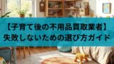 このガイドでは、子育て不用品を高く売るための業者選びのポイントや、アイテム別の売却のコツを詳しく解説します。賢い処分方法を知って、次のママやパパにバトンタッチしながらお得に整理整頓を進めていきましょう。